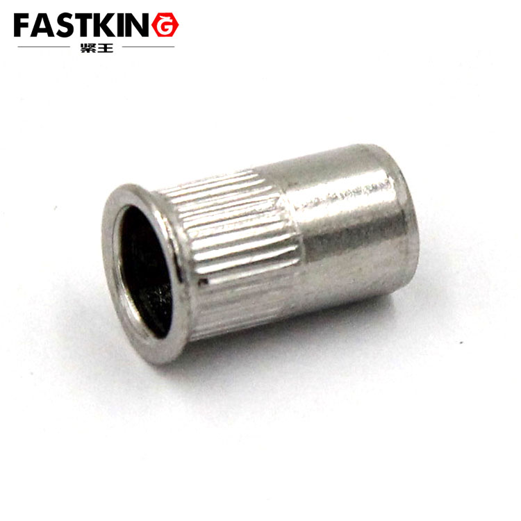 小沉頭豎條紋鉚螺母的核心競爭力源于其針對性的結構設計。其沉頭部分錐度更小,整體高度比大沉頭型號低 30%-50%,安裝后可實現 “微突出” 甚至 “全平齊” 效果,尤其適合厚度≤2mm 的薄板或表面需粘貼裝飾膜、涂層的構件,避免因沉頭過高導致的表面凸起、刮擦問題。