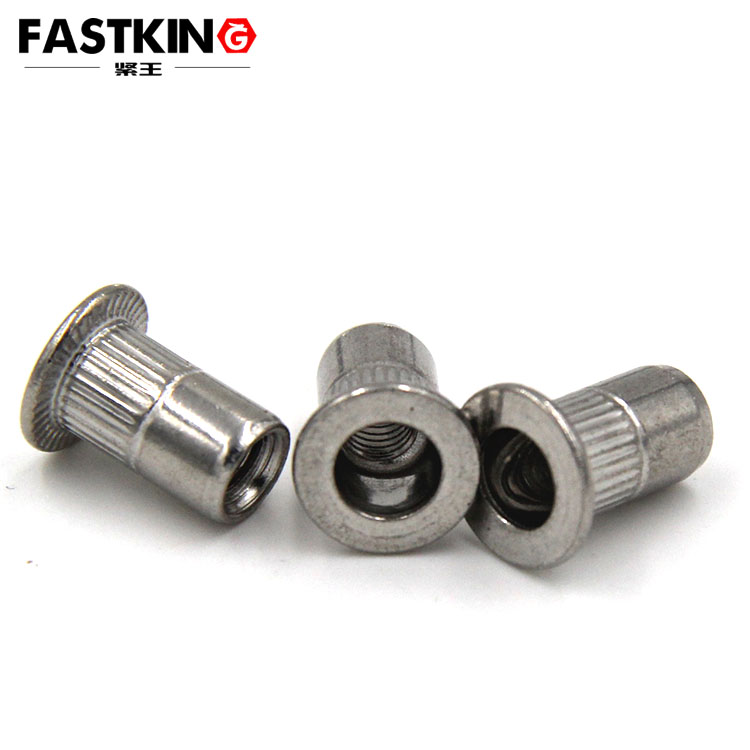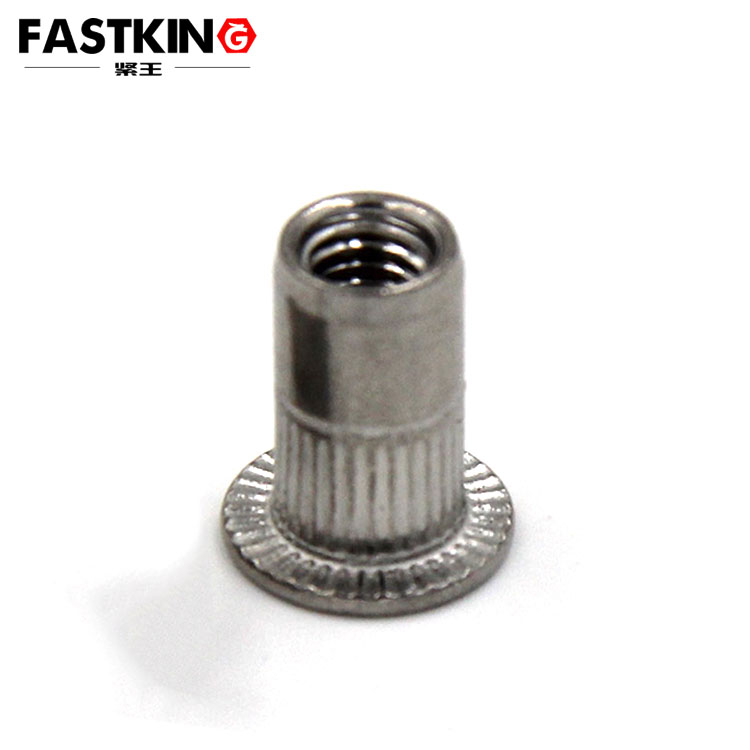 平頭豎條紋壓鉚螺母的結(jié)構(gòu)設(shè)計(jì)圍繞 “高效裝配” 與 “可靠連接” 兩大核心展開。其頭部為純平面結(jié)構(gòu),無錐度過渡,厚度通??刂圃?1-2mm,安裝后可與被連接件表面完全貼合,平面度誤差≤0.03mm,尤其適合表面無需打孔沉孔、僅能進(jìn)行平面裝配的場景,如鈑金機(jī)箱外殼、設(shè)備面板等 —— 相比沉頭螺母,其無需提前加工錐形沉孔,減少了 1-2 道工序,加工效率提升 30% 以上。