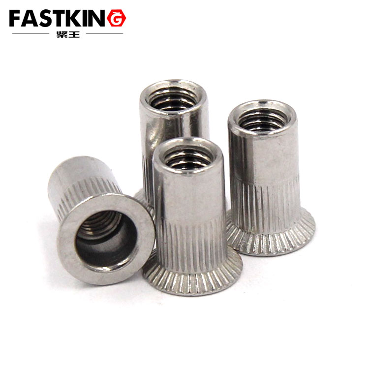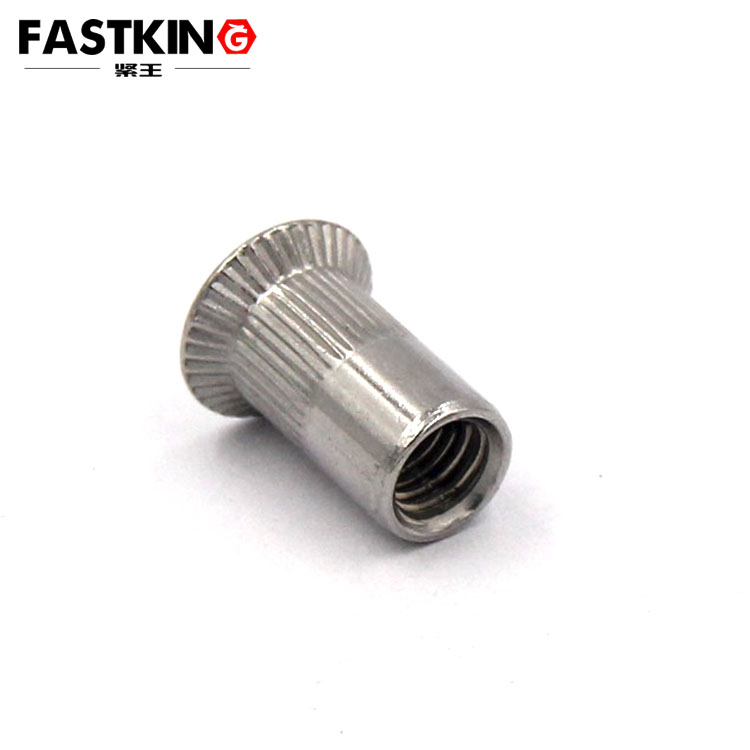 從工作原理來看,大沉頭豎條紋鉚螺母通過鉚接工藝實現緊固連接。使用時,先在被連接件上鉆出合適尺寸的安裝孔,將鉚螺母放入孔中,然后利用專用的鉚接工具,如氣動或手動拉鉚槍,對鉚螺母施加拉力。隨著拉力的增加,鉚螺母的柱體發生塑性變形,向外擴張并緊密貼合安裝孔的內壁,最終形成牢固的連接。這種鉚接方式無需在被連接件上進行復雜的螺紋加工,操作簡單高效,且能在薄板材料上創建出高強度的螺紋連接,解決了傳統螺紋連接在薄板應用中的諸多難題。